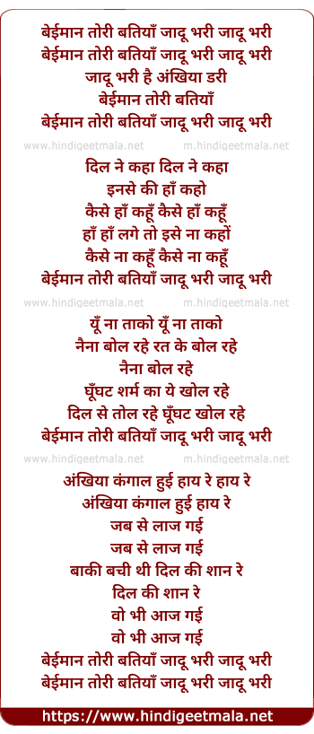 Lyrics of Beiman Tori Batiya Jadu Bhari - बेईमान तोरी बतियाँ जादू भरी जादू भरी