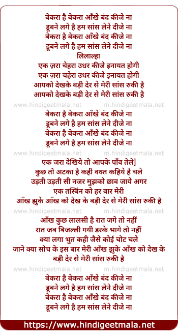 Lyrics of Bekaran Hai Bekarann - बेकरा है बेकरा