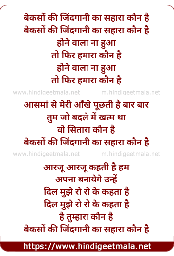 Lyrics of Bekason Ki Zindgani Ka Sahara Kaun Hai - बेकसों की जिंदगानी का सहारा कौन है