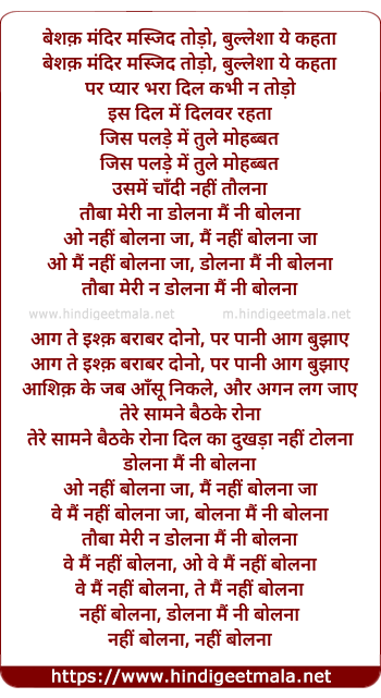 Lyrics of Beshaq Mandir Masjid Todo - बेशक़ मंदिर मस्जिद तोड़ो