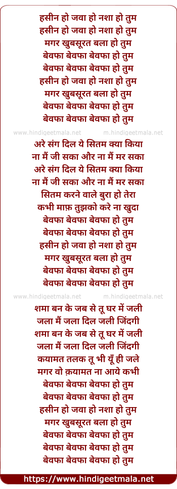 Lyrics of Bewafa Bewafa Ho Tum - बेवफा बेवफा हो तुम