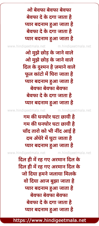 Lyrics of Bewafa De Ke Daga Jata Hai - बेवफा दे के दगा जाता है