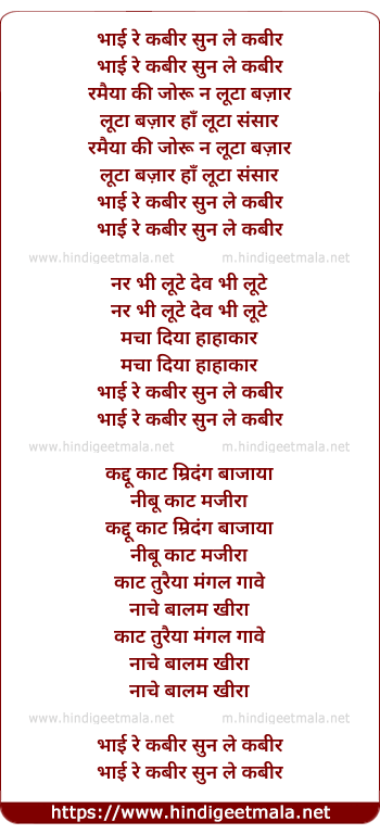 Lyrics of Bhaai Re Kabir Sun Le - भाई रे कबीर सुन ले