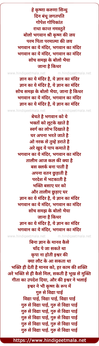 Lyrics of Bhagwan Ka Ye Mandir - भगवान का ये मंदिर