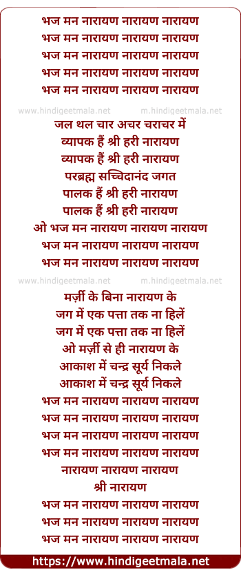 Lyrics of Bhaj Man Narayan Narayan Narayan - भज मन नारायण नारायण नारायण
