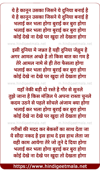 Lyrics of Bhalai Kar Bhala Hoga - भलाई कर भला होगा