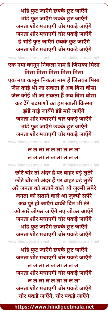 Lyrics of Bhaandey Phut Jayenge Chhakke Chhut Jayenge - भांडे फुट जाएँगे छक्के छुट जाएँगे