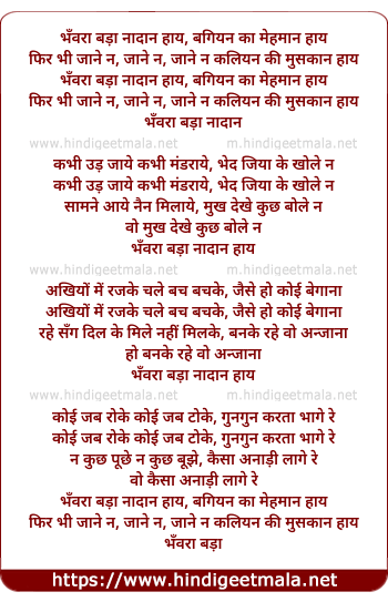 Lyrics of Bhanwara Bada Nadan Haay, Bagiyan Ka Mehmaan Haay - भँवरा बड़ा नादान हाय, बगियन का मेहमान हाय