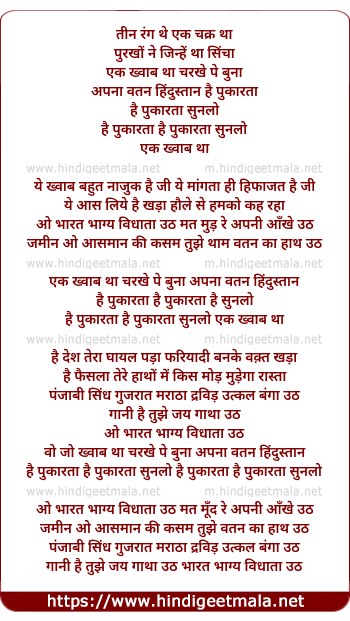 Lyrics of Bharat Bhagya Vidhata Uth - भारत भाग्य विधाता उठ