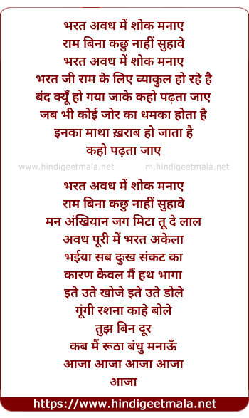 Lyrics of Bharath Avadh Me Shok Manaye - भरत अवध में शोक मनाए