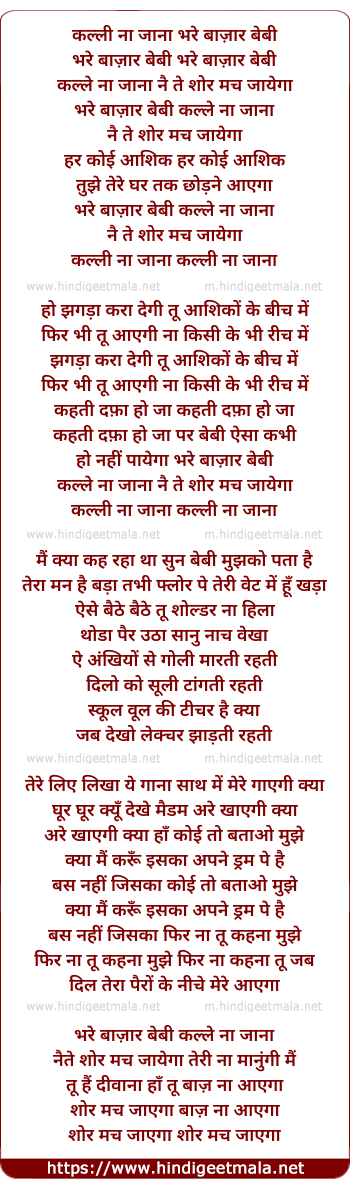 kalli na jana na jana bhare bazar baby