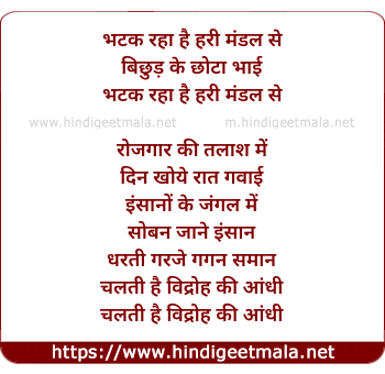 Lyrics of Bhatak Raha Hari Mandal Se - भटक रहा है हरी मंडल से