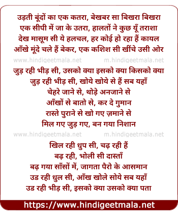 Lyrics of Bheed - उड़ती बूंदों का एक कतरा, बेखबर सा बिखरा बिखरा