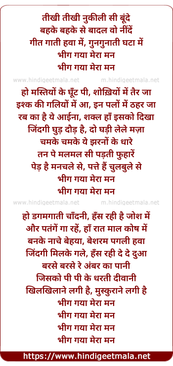 Lyrics of Bheeg Gaya Mera Mann (Cherrapunjee) - तीखी तीखी नुकीली सी बूंदे