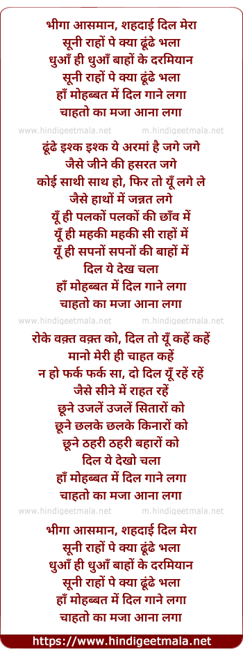 Lyrics of Bheega Aasmaan, Shehdaayi Dil Mera - भीगा आसमान, शहदाई दिल मेरा