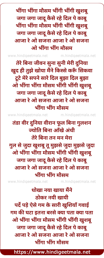 Lyrics of Bheega Bheega Mausam Dheemi Dheemi Khushbu - भीगा भीगा मौसम धीमी धीमी खुशबू