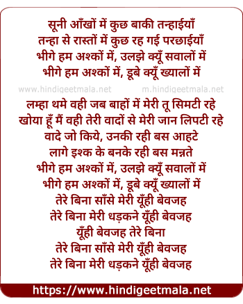 Lyrics of Bheege Hum - सूनी आँखों में कुछ बाकी तन्हाईयाँ