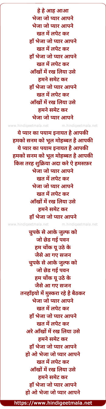 Lyrics of Bheja Jo Pyar Aapne - भेजा जो प्यार आपने