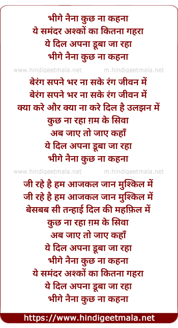 Lyrics of Bhige Naina Kuchh Na Kehna (Female) - भीगे नैना कुछ ना कहना