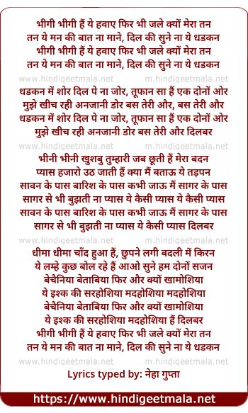 Lyrics of Bhigi Bhigi Hain Ye Hawao - भीगी भीगी हैं ये हवाए