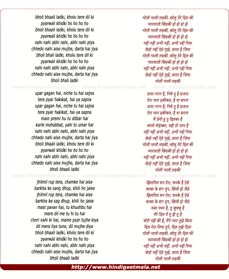 Comments for lyrics of song "Bholi Bhali Ladki Kholu Tere"