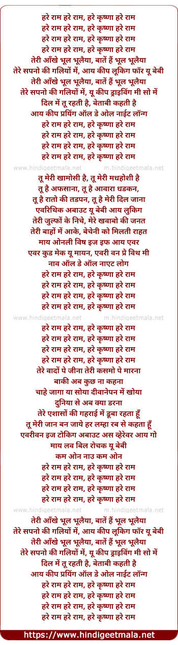 Poetic Translation - Lyrics of Bhool Bhulaiya (Remix) - हरे राम हरे राम, हरे कृष्णा हरे राम