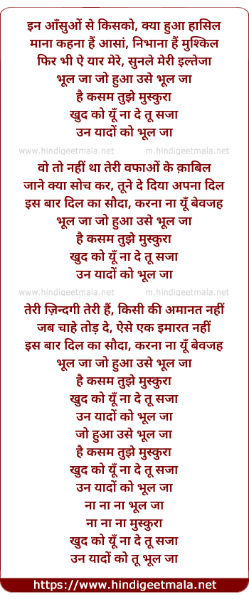 Lyrics of Bhool Ja (Jo Hua Use) - इन आँसुओं से किसको, क्या हुआ हासिल