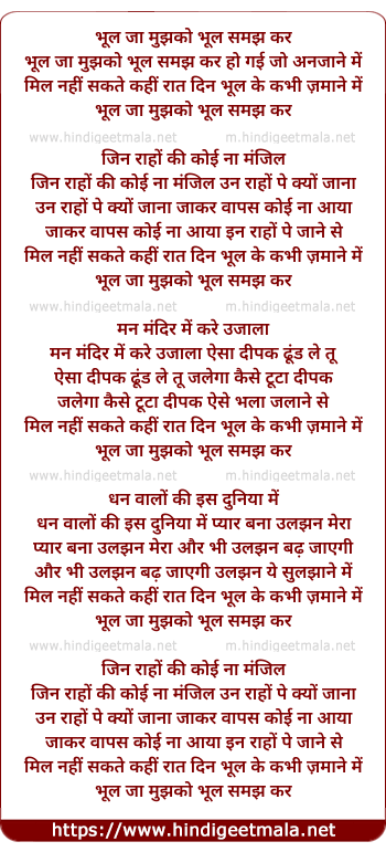 Lyrics of Bhool Ja Mujhko Bhool - भूल जा मुझको भूल