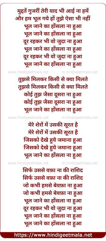 Lyrics of Bhool Jane Ka Hausla Na Hua - मुद्दतें गुजरीं तेरी याद भी आई ना हमें