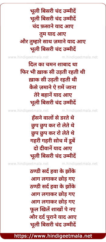 Lyrics of Bhooli Bisri Chand Yade - भूली बिसरी चंद उम्मीदें