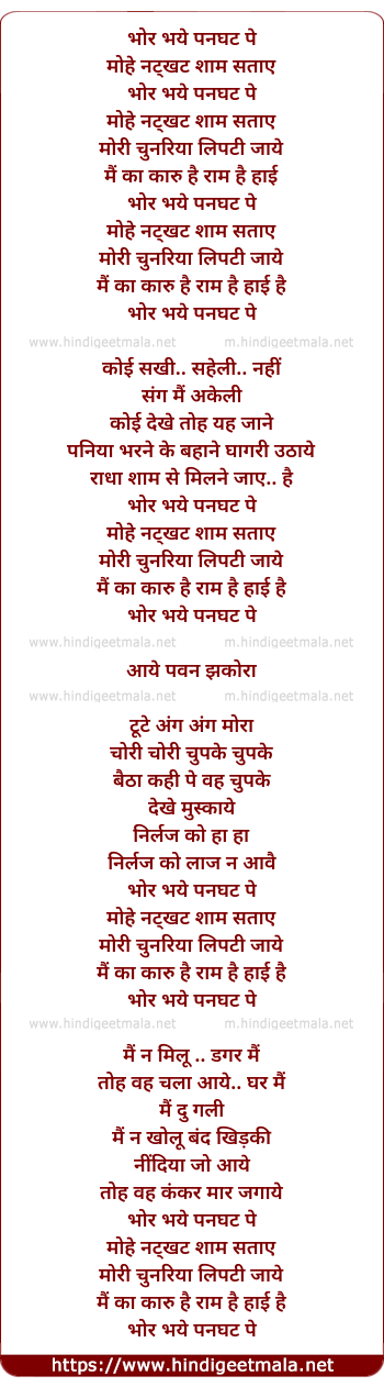 Lyrics of Bhor Ka Saanjh Ka - भोर का साँझ का