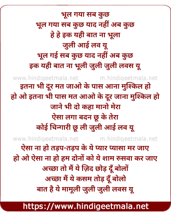 Lyrics of Bhul Gaya Sab Kuchh, Yad Nahee Abb Kuchh - भूल गया सब कुछ, याद नहीं अब कुछ