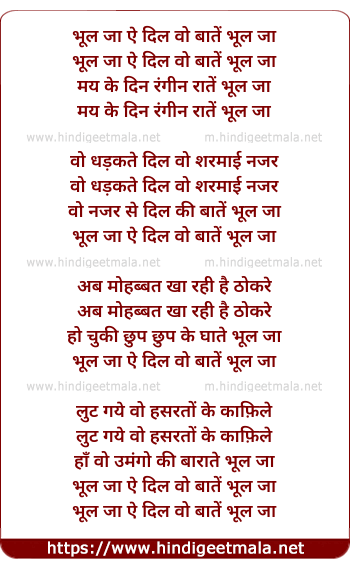 Lyrics of Bhul Ja Ae Dil Wo Bate Bhul Ja - भूल जा ऐ दिल वो बातें भूल जा