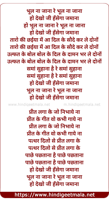 Lyrics of Bhul Na Jaana - भूल ना जाना रे भूल ना जाना