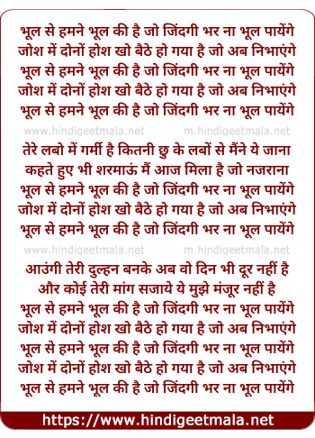 bhul se hamne bhul ki hai jo jindagi bhar na bhul payeyenge