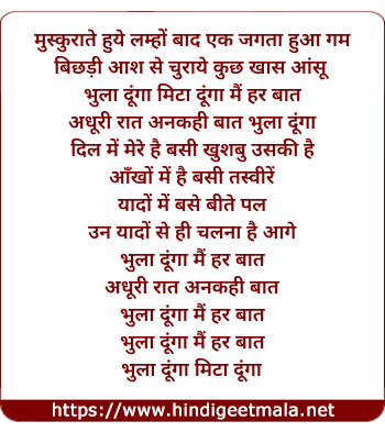 Lyrics of Bhula Doonga - मुस्कुराते हुये लम्हों बाद एक जगता हुआ गम