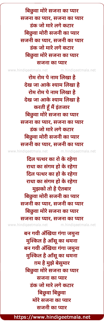 Lyrics of Bichhuwa More Sajna Ka Pyar - बिछुवा मोरे सजना का प्यार