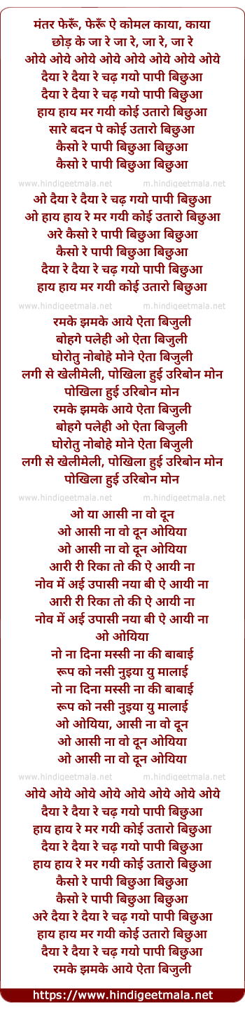 Lyrics of Bichua Kat Gayo - मंतर फेरूँ, फेरूँ