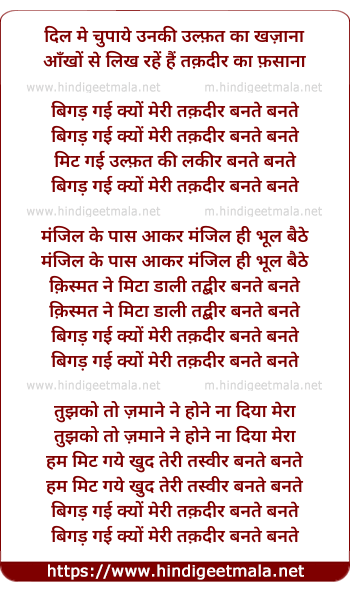 Lyrics of Bigad Gai Kyon Meri Taqadir Banate Banate - बिगड़ गई क्यों मेरी तक़दीर बनते बनते