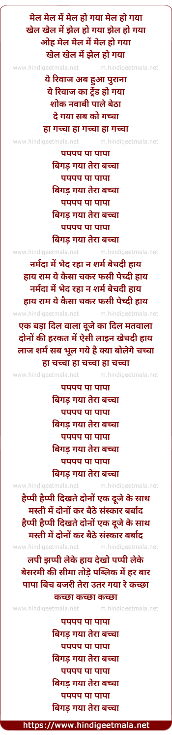 Lyrics of Bigad Gaya Tera Bachcha - बिगड़ गया तेरा