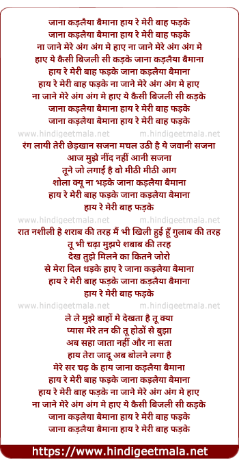 Lyrics of Bijli Si Kadke - बिजली सी कड़के