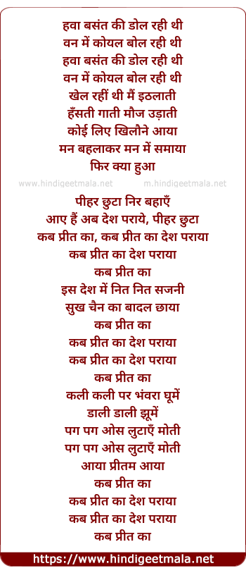 Lyrics of Hawa Basant Ki Dol Rahi Thi - हवा बसंत की डोल रही थी