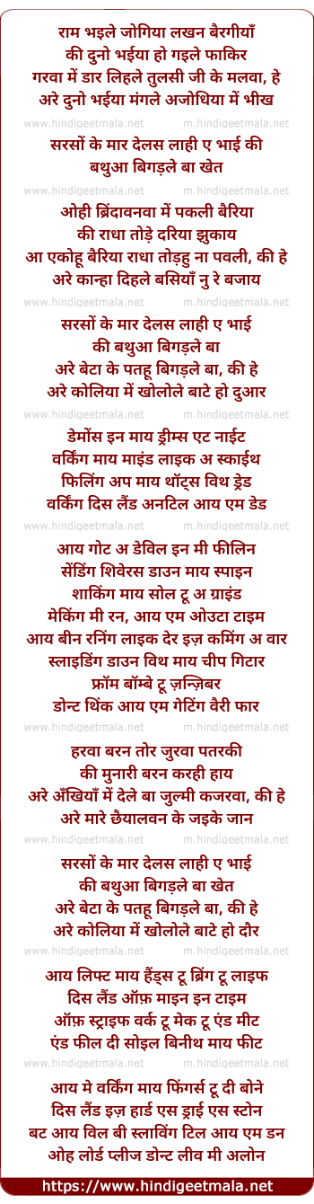 Lyrics of Birha - राम भइले जोगिया लखन बैरगीयाँ