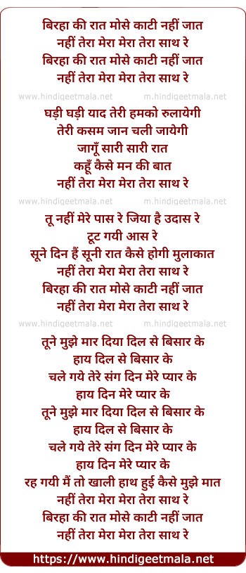 Lyrics of Birha Ki Raat Mose Kaati Nahi Jaat - बिरहा की रात मोसे काटी नहीं जात