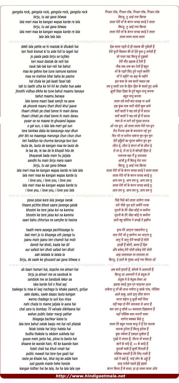 lala meri maa ke kangan wapas karde re lala lala