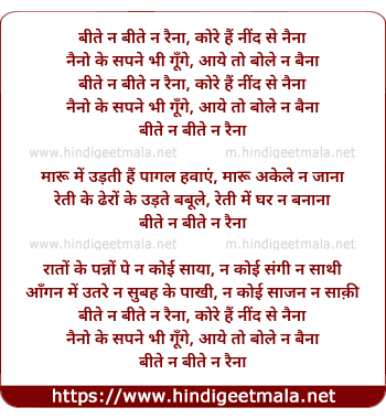 Lyrics of Bite Na Bite Na Raina - बीते ना बीते ना रैना