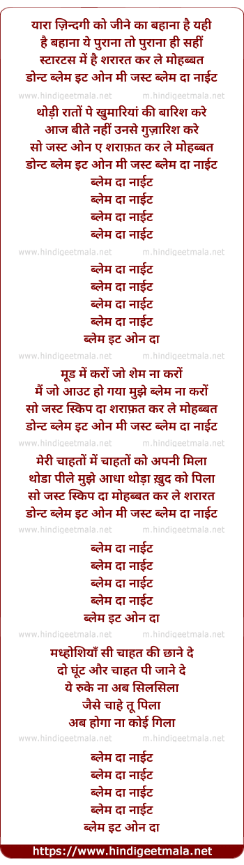 Lyrics of Blame The Night - ब्लेम दा नाईट