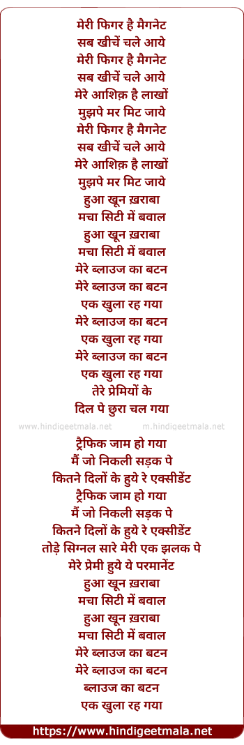 Lyrics of Blouse Ka Button - मेरी फिगर है मैगनेट