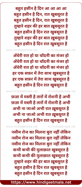 Lyrics of Bohat Haseen Hai Din - बहुत हसीन है दिन आ आ आ आ