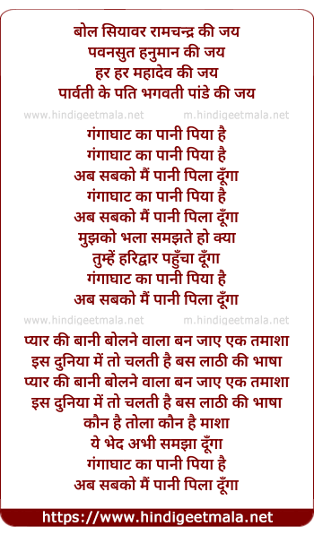 Lyrics of Bol Siyaavar, Gangaghat Ka Pani Piya Hai - बोल सियावर, गंगाघाट का पानी पिया है